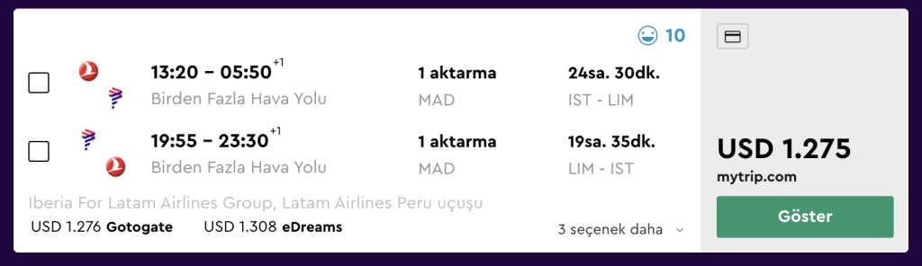 • Yaşadığınız yerden Peru’ya ulaşım ve Peru’dan dönüş bileti